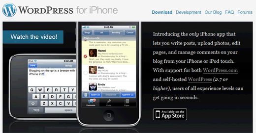 Official iPhone app that lets you write posts, upload photos, edit pages, and manage comments on your blog from your iPhone or iPod touch. With support for both WordPress.com and self-hosted WordPress (2.7 or higher), users of all experience levels can get going in seconds.