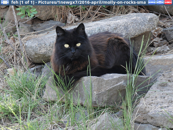 to find what I want. It’s a lot faster to view the image with feh than to open a graphical app and wander through it until I find my my image. Like the photo of my little cat Molly in Figure 2:
