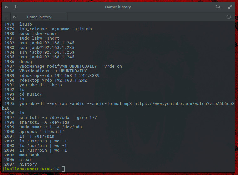 This is a great way to re-run (or modify and run) a command you’ve previously issued. I use this Linux feature regularly. It not only saves me from having to remember the minutiae of a command, it also saves me from having to type out the same command over and over.