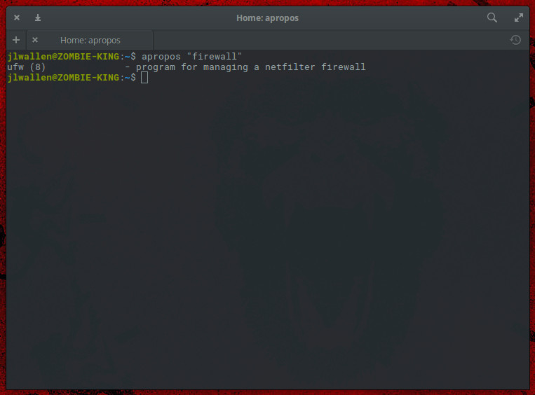 This is the first of two tools that can be installed to assist you in recalling Linux commands. Apropos is able to search the Linux man pages to help you find the command you’re looking for. Say, for instance, you don’t remember which firewall tool your distribution uses. You could type apropos “firewall” and the tool would return any related command (Figure 2).