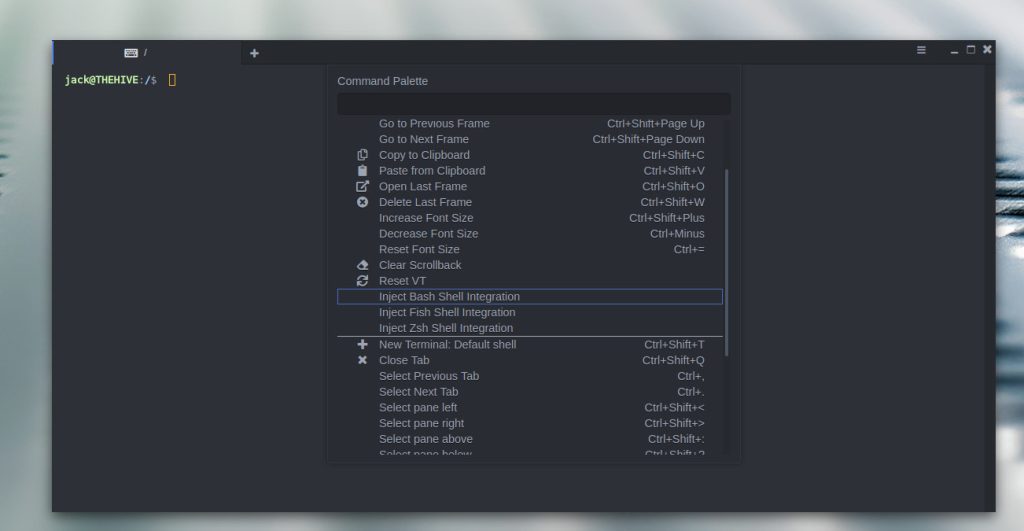 Once the app is running, to enable frames you must first enable bash integration. To do that, open Extraterm and then right-click anywhere in the window to reveal the popup menu. Scroll until you see the entry for Inject Bash shell Integration (Figure 5). Select that entry and you can then begin using the frames option.