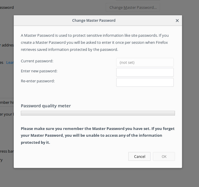 For some, having to retype those passwords every single time might be too much. So what do you do if you want to protect those passwords, while not having to type them constantly? If you use Firefox, there’s a built-in tool, called Master Password. With this enabled, none of your browser’s saved passwords are accessible, until you correctly type the master password. To set this up, do the following: