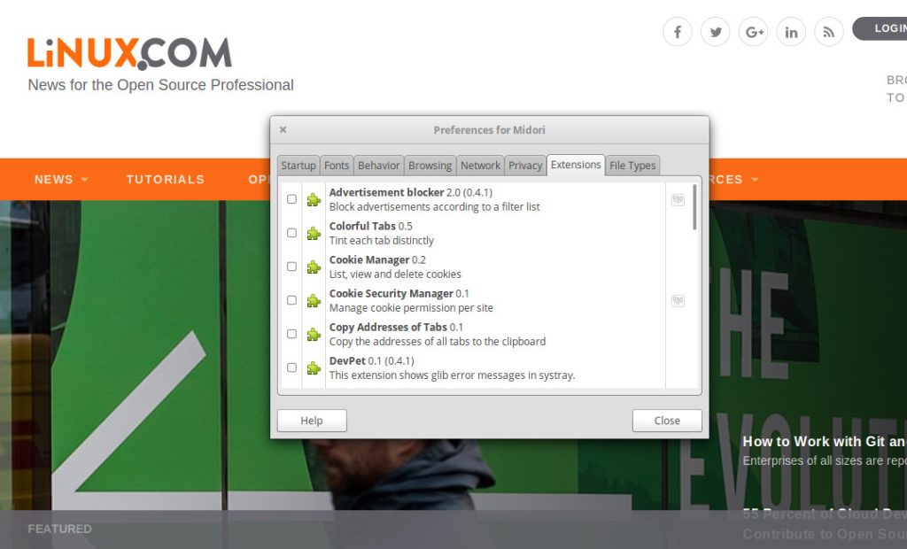 Not every web browser offers extensions. Some, such as Midoria, offer a limited about of built-in plugins, that can be enabled/disabled (Figure 3). However, you won’t find third-party plugins available for the majority of these lightweight browsers.