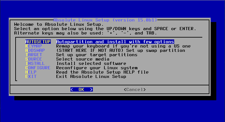 Figure 1: The Absolute Linux installer harkens back to installing Linux of old.