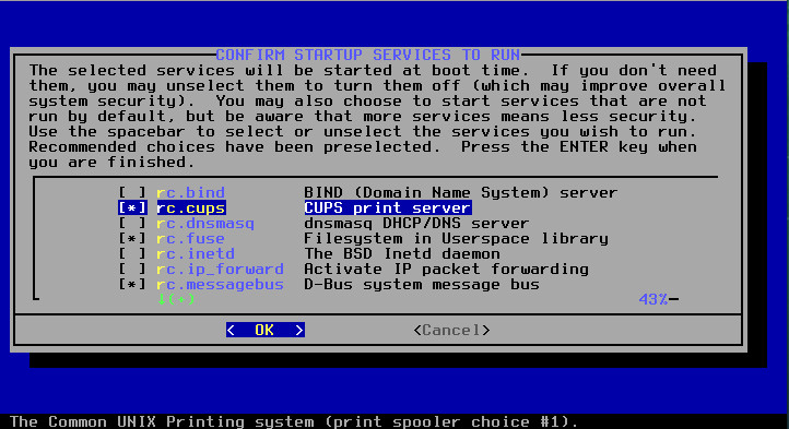 In the next window (Figure 5), you can enable startup services. From this screen, you can enable services like CUPS, Samba, SSH, and more.