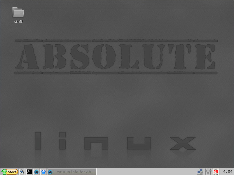 Figure 6: The Absolute Linux desktop should look familiar to anyone that has used a computer from the early 2000s.