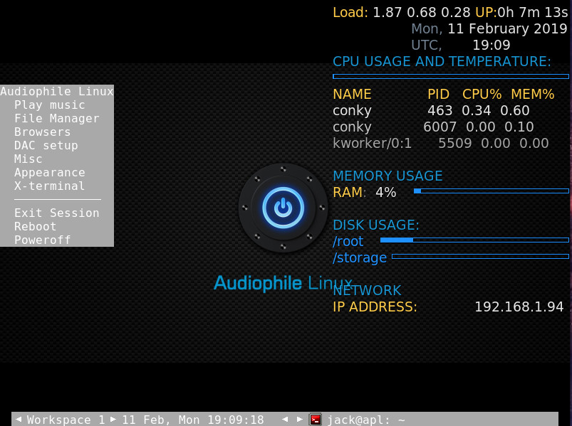 This bring us to Audiophile Linux. Audiophile Linux is an Arch Linux-based distribution geared toward, as the name suggests, audiophiles. What makes Audiophile Linux special? First and foremost, it’s optimized for high quality audio reproduction. To make this possible, Audiophile Linux features: