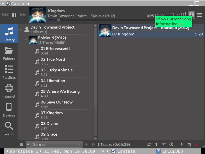 Figure 3: Listening to Devin Townsend Project’s Kingdom.