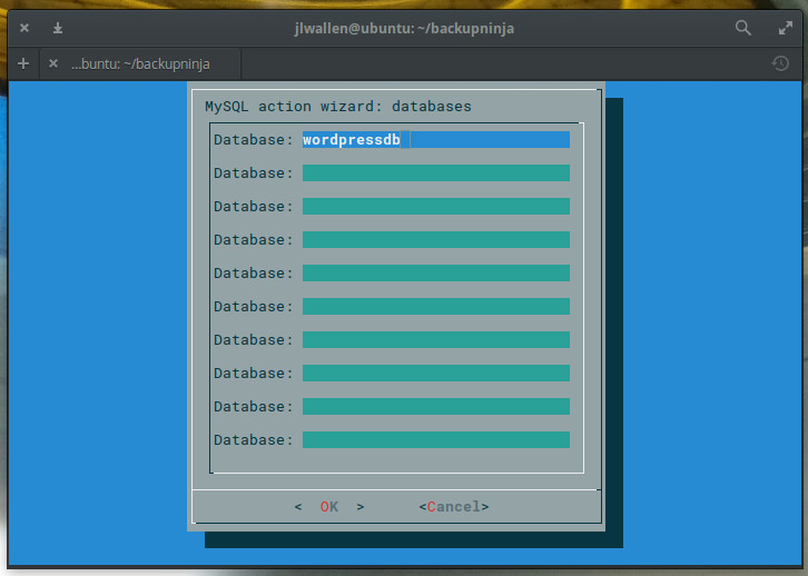 Once you’ve typed out all the names of the databases to be backed up, tab down to OK and hit Enter on your keyboard.