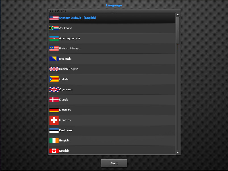 The installation of Elive is as simple as any other modern Linux distributions. You will, however, have to walk through the initial Enlightenment setup, even before reaching the live distribution desktop. This starts with selecting your system default language (Figure 1).