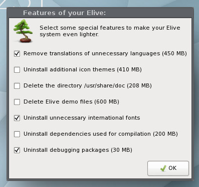 Finally, you can dictate what Elive will remove from the system, in order to make it even lighter (Figure 8).