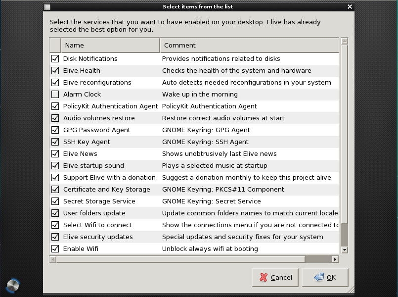 Upon reboot, you will be asked to select the services you want enabled on your desktop. Quite a few options are available, so look through them carefully and select only the ones you know you’ll need (Figure 9).