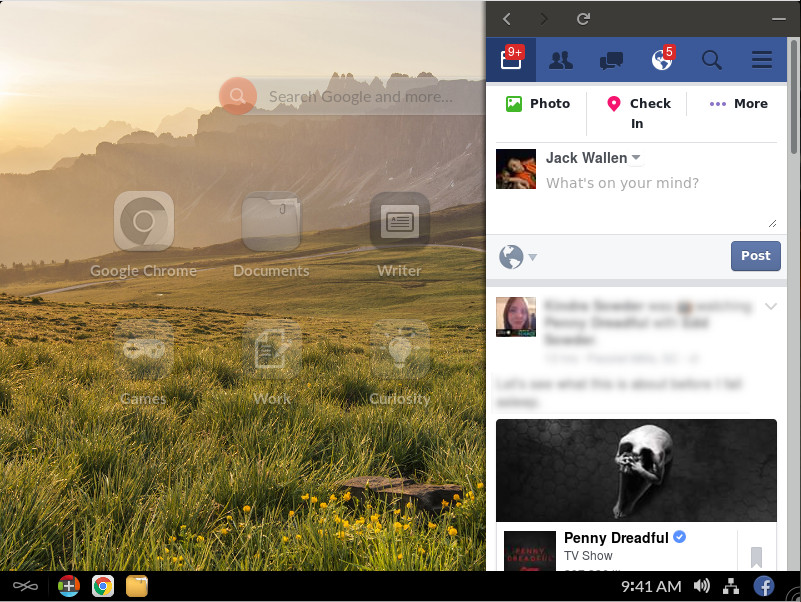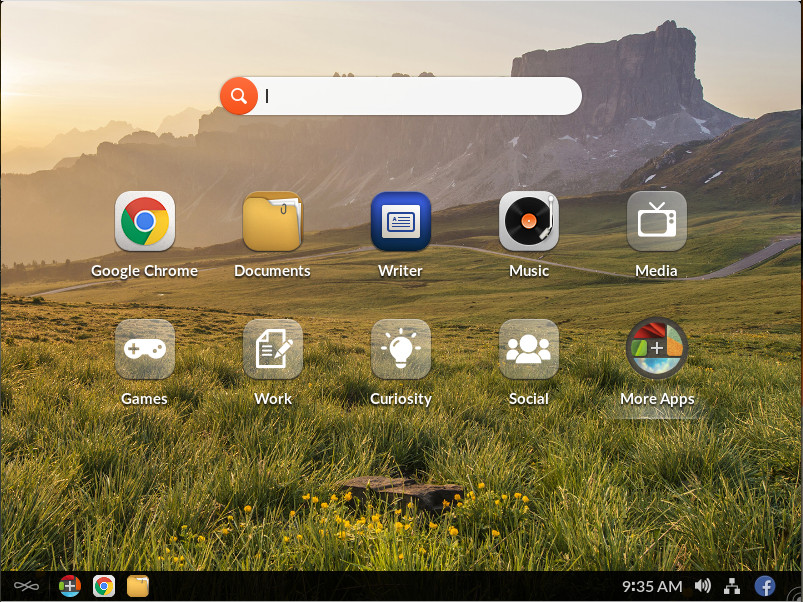 EOS Shell offers a grid of applications and application folders, a search bar (that can be configured to search the internet, the App Center, the Documents folder, open the terminal, and even used as a calculator), and a panel that includes quick access to the App Center, quick launch icons, a system tray, and a Facebook sidebar (Figure 2).