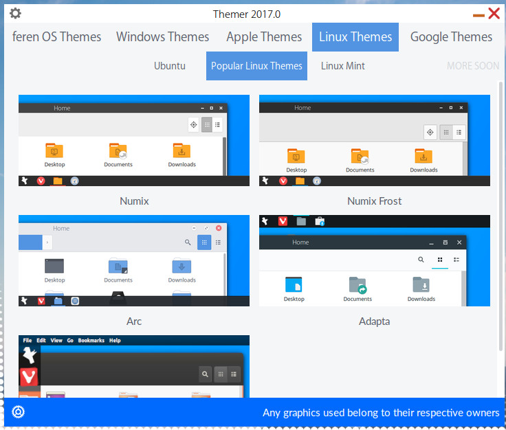 On the desktop, you’ll find an icon for the Feren OS Themer. Click on that and you can switch the desktop theme from Feren OS, Windows, Apple, Linux, and Google themes (Figure 4). This might well be the single best desktop themer on the market.