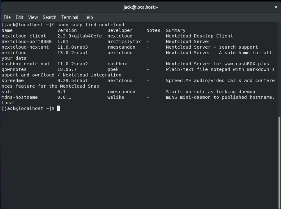 sudo snap find nextcloud