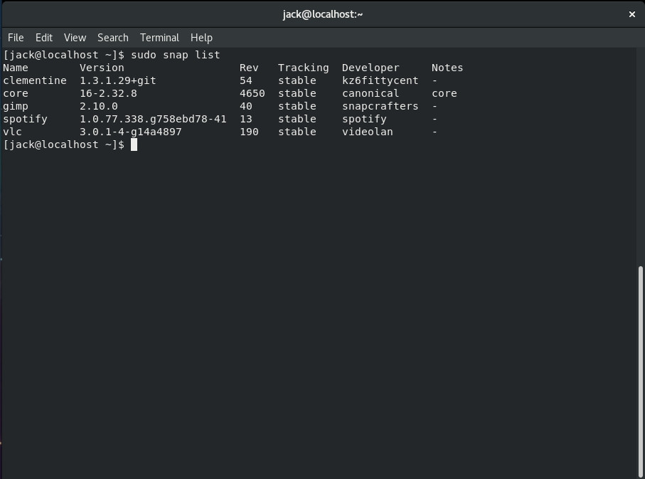 Figure 3: Listing installed Snap packages.