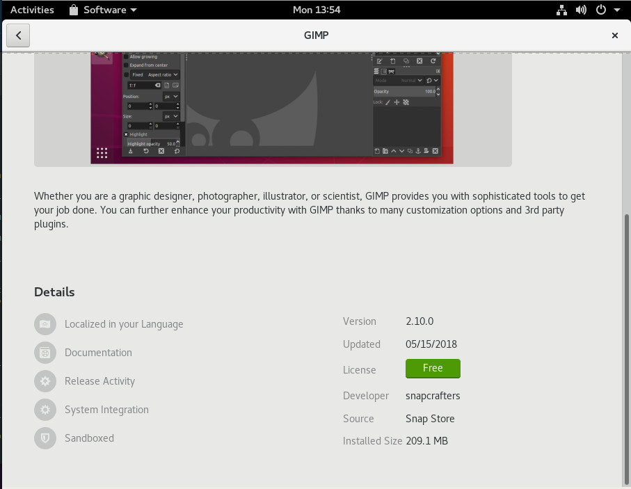 Figure 1: GIMP is available to install via Snap.