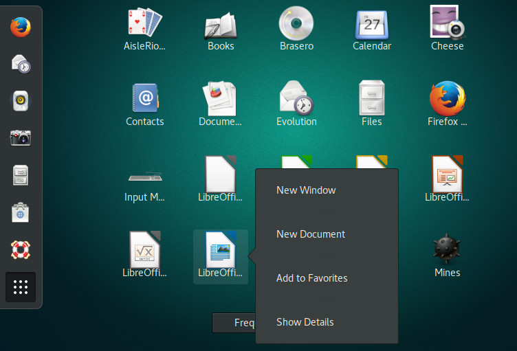 This being GNOME, of course, we can actually add a dock-like-feature with the help of an extension (more on that later). However, without that extension, to get to all of your applications, you must open the Dash (click on Applications in the upper left corner or clicking the Super key on your keyboard) and then click on the grid of dots at the bottom of the Favorites bar. As you can see (Figure 3), the GNOME Dash application listing offers a somewhat similar experience to that of Unity. The biggest difference is the inability to filter results (beyond All or Frequent).