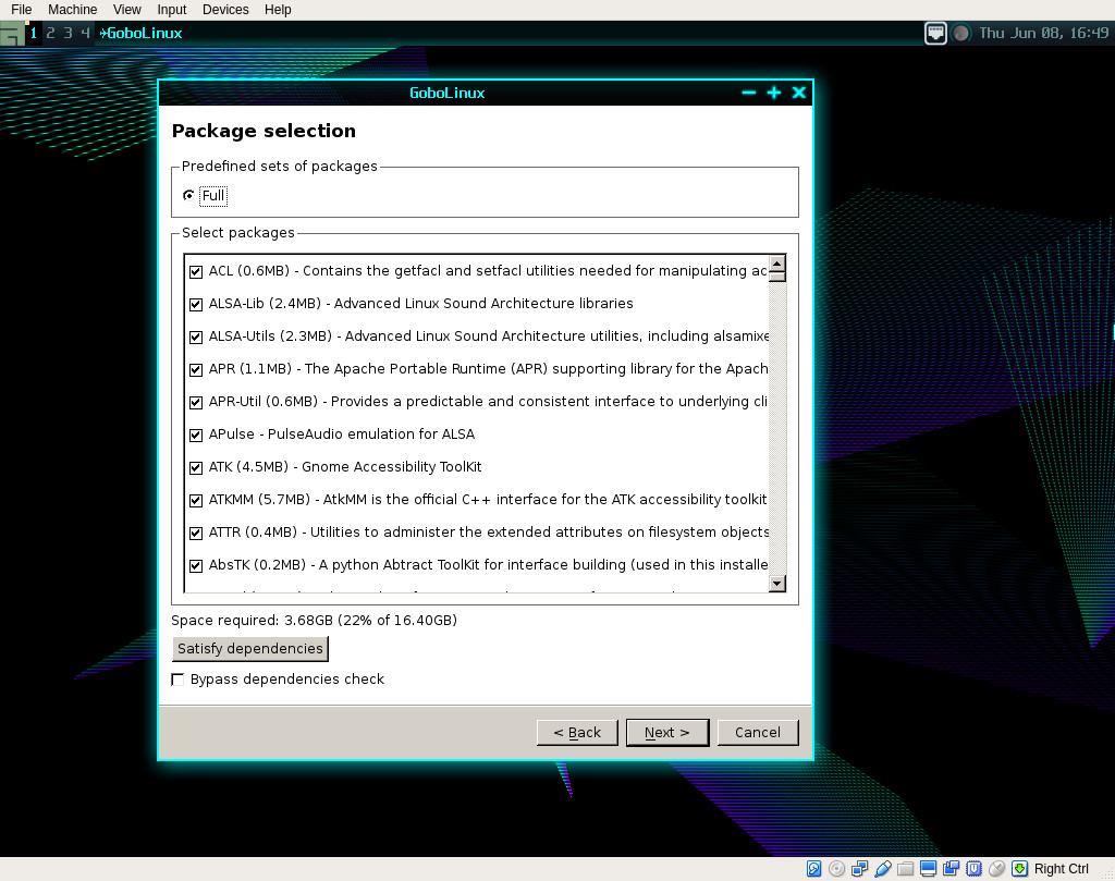 Figure 3: Selecting the packages you want to include in your GoboLinux installation.