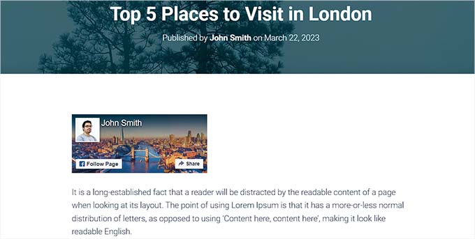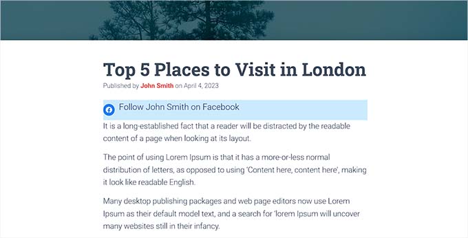Alternatively, if you are running a multi-author WordPress blog, then you can enable users to follow their favorite authors on Facebook.