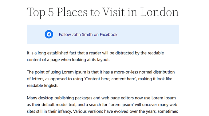 Next, you may want to add some text along with the Facebook profile link. You can write something like “Follow Author Name on Facebook!”.
