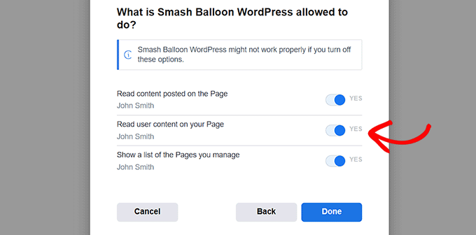 For instance, if you want to enable users to read the user content on the page, then you need to toggle the switch to ‘Yes’.