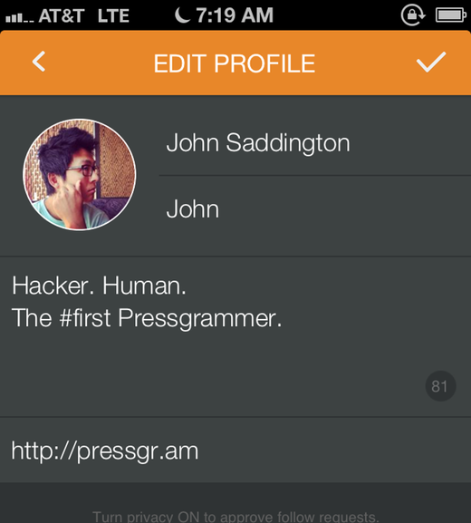 Once you’re inside the app, you should setup your profile by adding an avatar, some bio information, and a link to your blog.