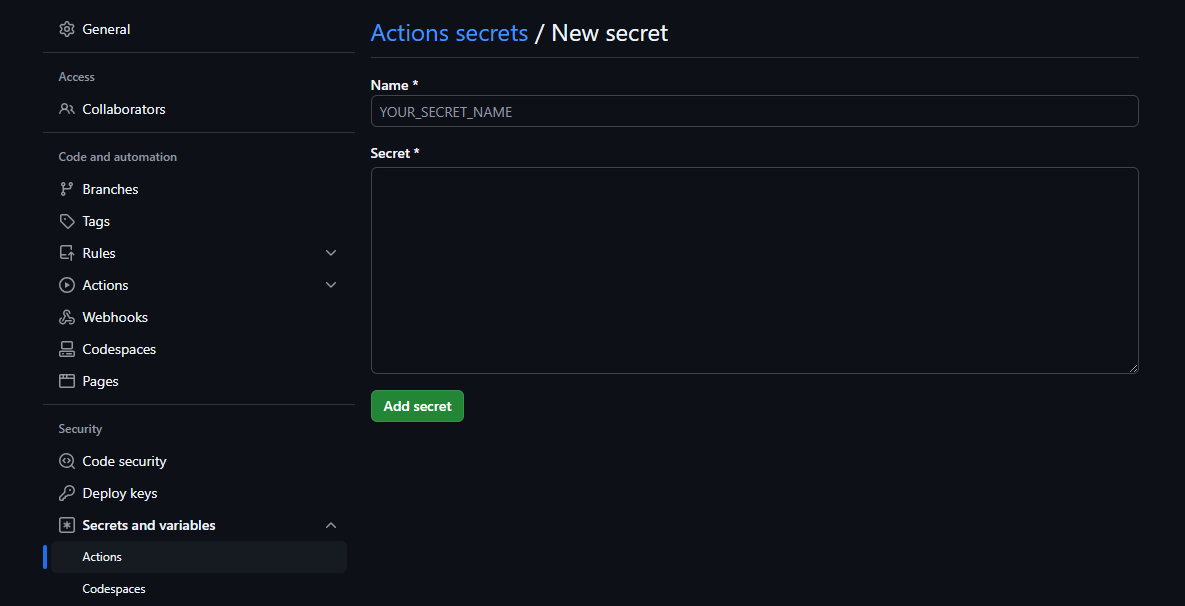 - Create a GitHub repository to store your project and set up new workflows. For example,