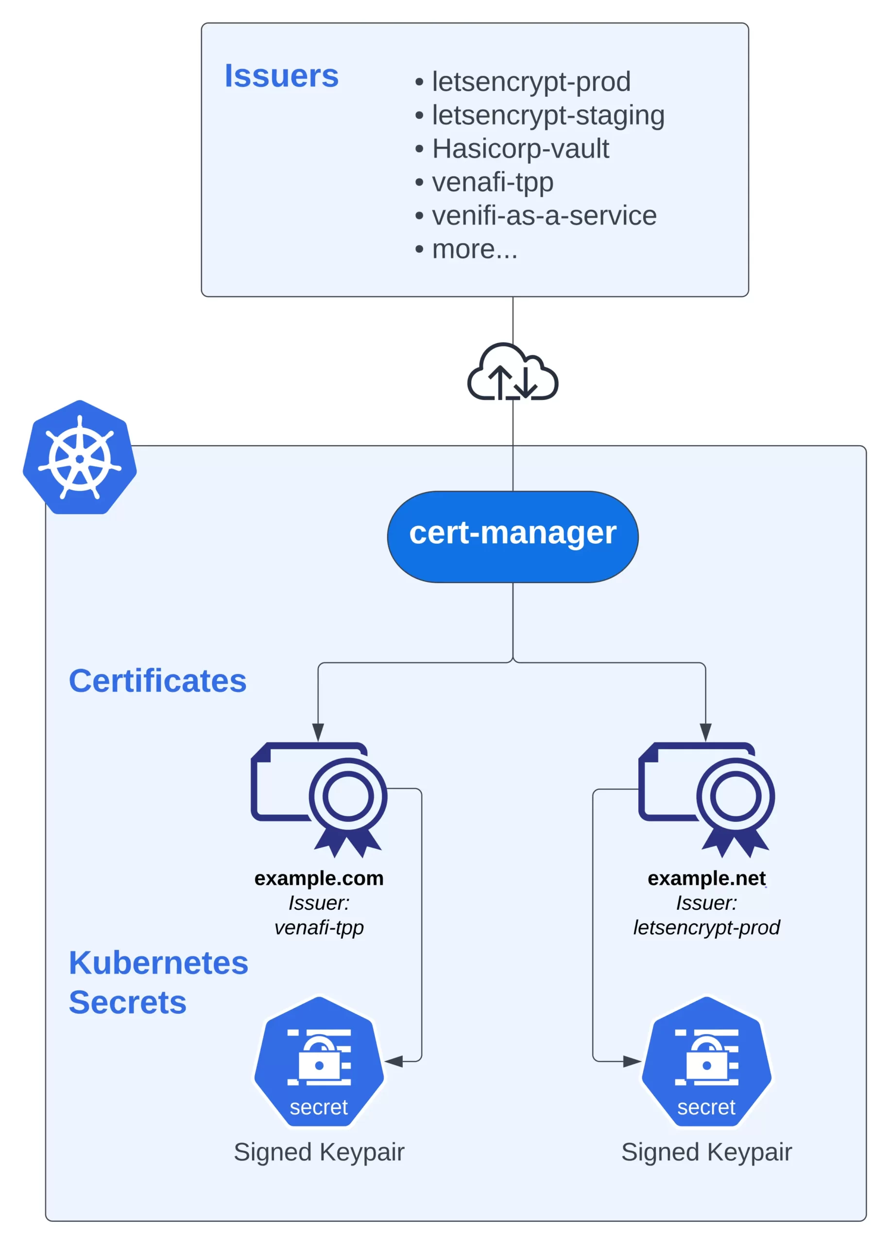 Cert-manager, at a high level, is a custom Kubernetes resource that allows for certificate management natively within Kubernetes.