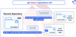 Learn how to use git clone to copy repositories, clone tags, set folders, and manage forks with remotes. Cloning a repository is a fundamental Git command that creates a local copy of a remote repository on your machine. This allows you to work on the project offline, make changes, and…