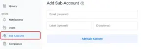 3.Fill in your Sub-Account information in the Email and Label fields respectively.