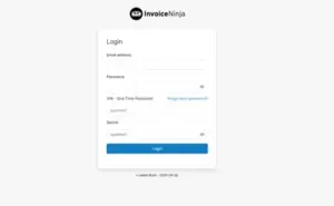 In the respective fields, enter your administrator email address and password and click Login to access the Invoice Ninja dashboard.