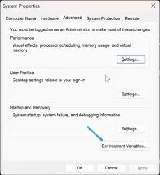 , and select Edit the System Variables from the search results. - Click Environment Variables in the open System Properties window.