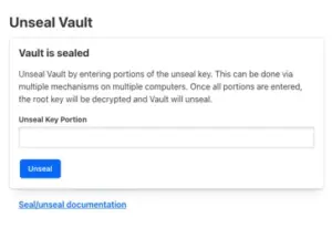 3.Vault requires a “quorum” of keys to unlock. Copy Unseal Key 1 from from the output of step 1, paste it into the box, and click Unseal.