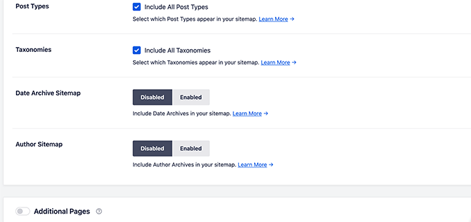 For instance, All in One SEO allows you to choose what to include in your sitemaps. You can add or remove post types, taxonomies, individual posts and pages.