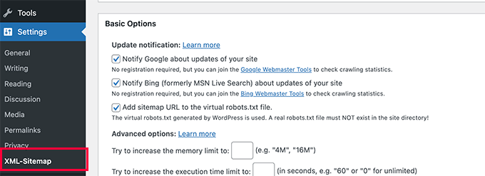 You can now switch to the Settings » XML-Sitemap page to configure your sitemaps. For most websites, default settings would work out of the box.