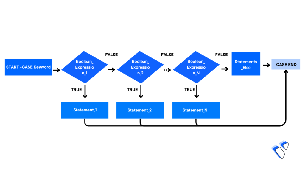 SQLCopySELECT sample_column_1, sample_column_2, sample_column_n, CASEWHEN sample_condition_1 THEN ‘sample_value_1’ WHEN sample_condition_2 THEN ‘sample_value_2’ WHEN sample_condition_n THEN ‘sample_value_n’ ENDAS sample_case_column FROM SAMPLE_TABLE