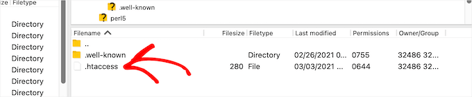 If you can’t find your .htaccess file, then it could be hidden by your file manager or FTP client. To learn more, see our guide on why you can’t find the .htaccess file on your WordPress site.