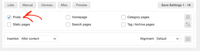Click on the ‘Auto-Insert’ method to automatically display ads within post content.