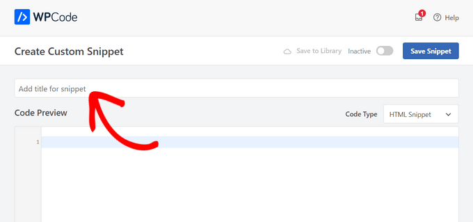 You also need to select ‘HTML Snippet’ as the ‘Code Type’ from the dropdown list on the right side of the screen.