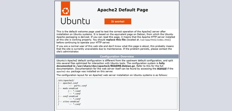 - Access your domain or server IP using a web browser such as Chrome and verify that the default Apache web page displays.