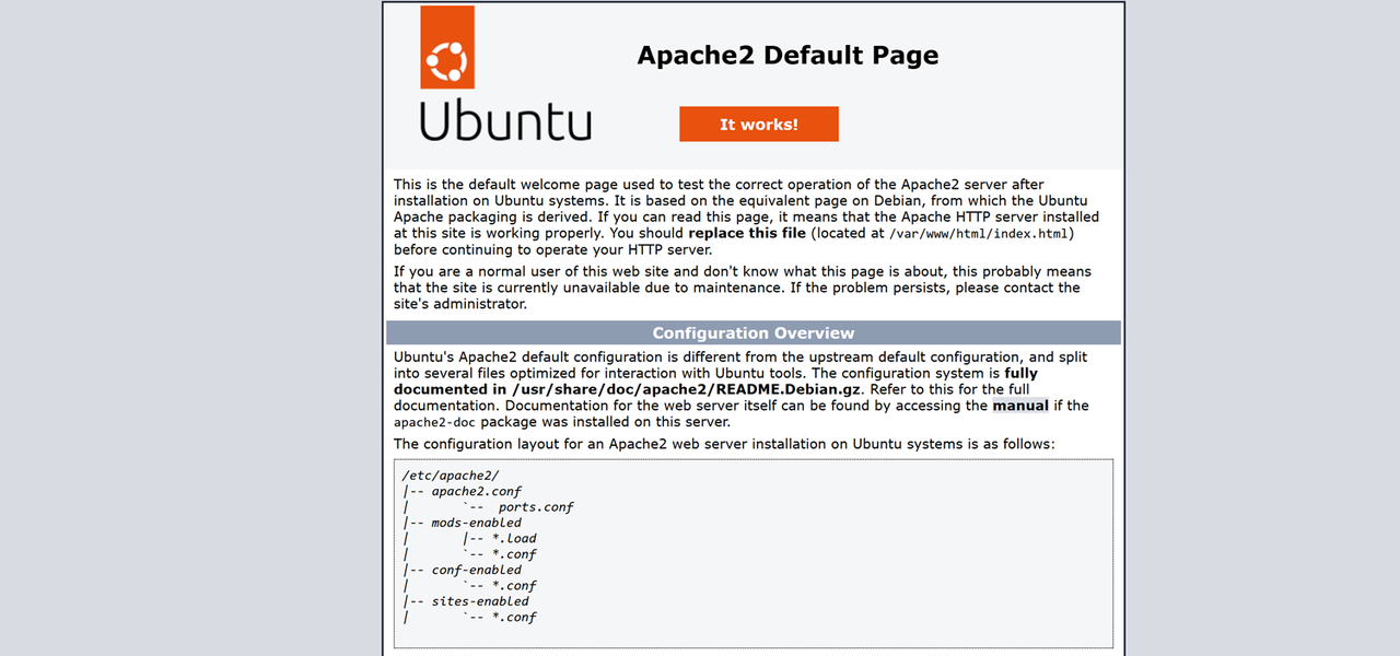 - Access your public server IP using a web browser such as Chrome and verify that the default Apache web page displays.