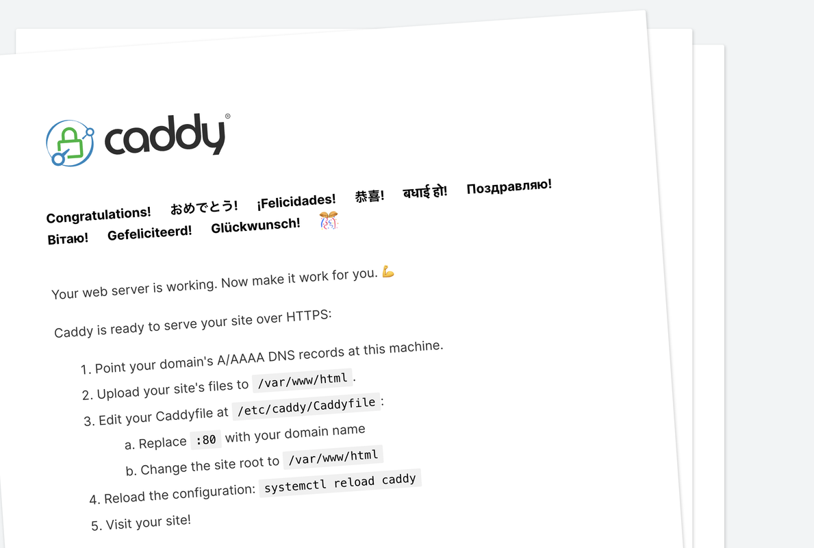 - Access your domain using a browser such as Chrome to verify that Caddy serves your virtual host web application files.