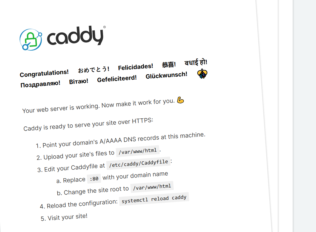 file.html<html> <head> <title>Caddy Server Install Test</title> </head> <body> <h1>Greetings from Vultr!</h1> </body> </html>