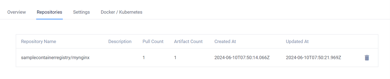 - Navigate to the Repositories tab and verify that the new Docker image is available.