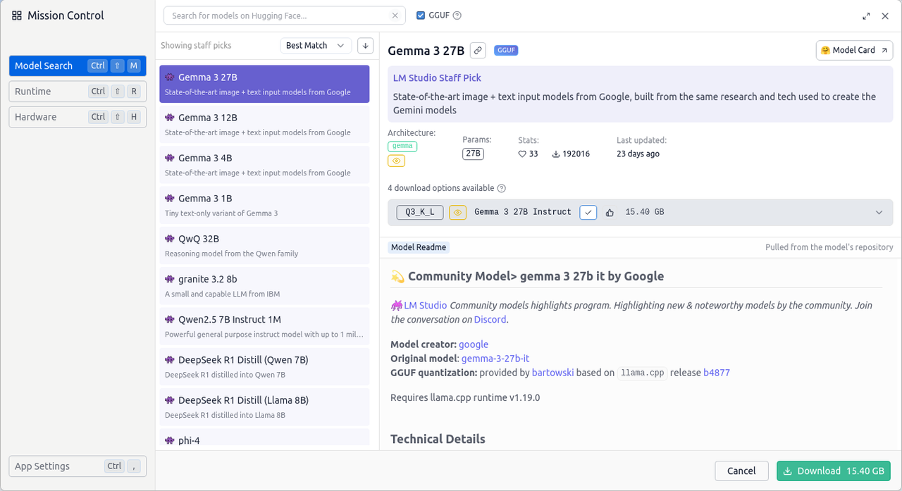- Hugging Face: Opensource models from Hugging Face and the LM Studio community repository.