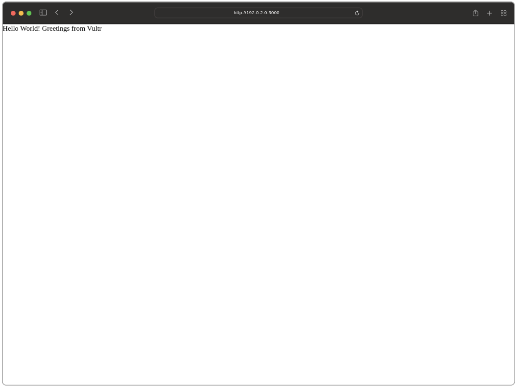 and outputs aHello World! Greetings from Vultr