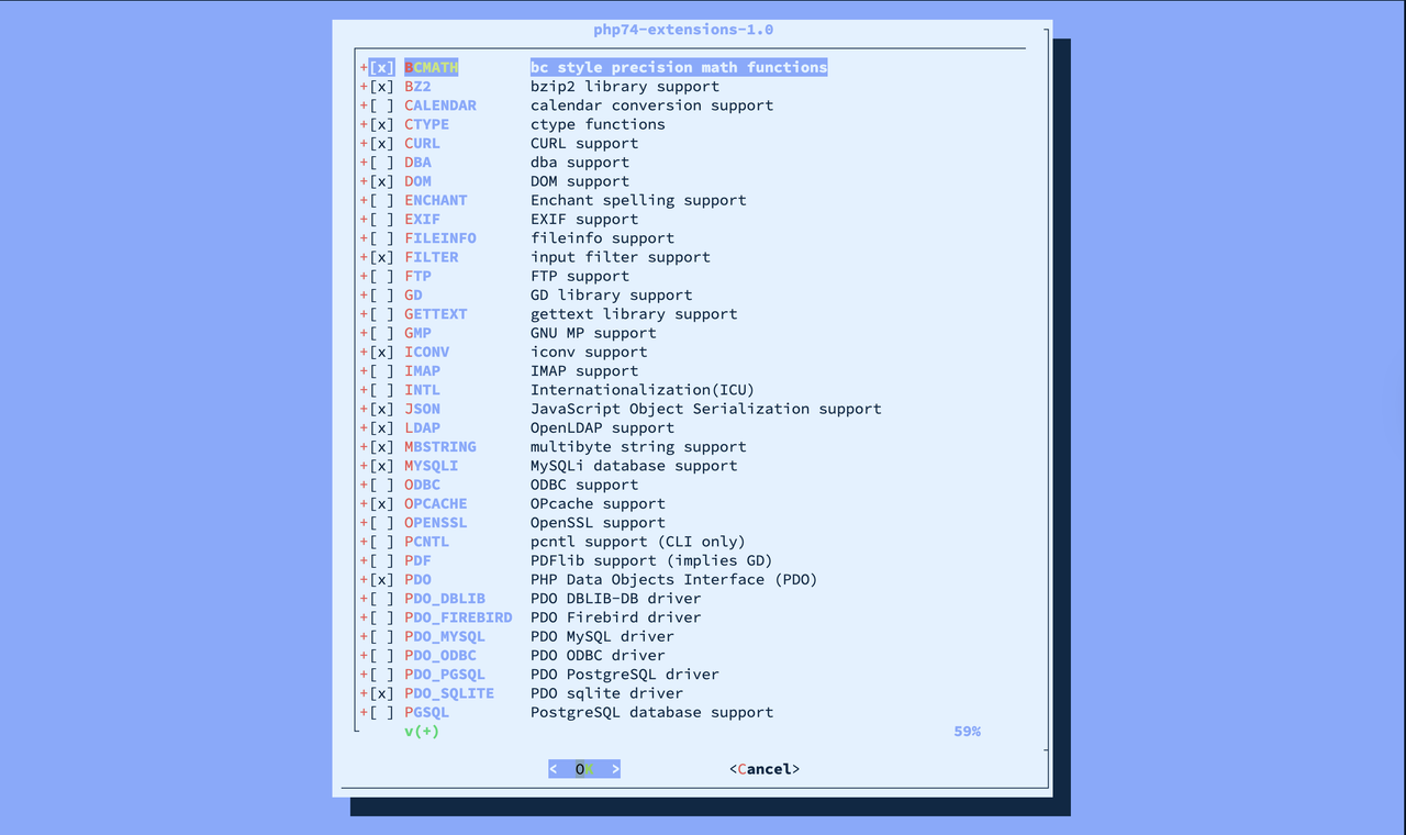 - After completing the configuration, run the following command to compile and install the selected extensions.