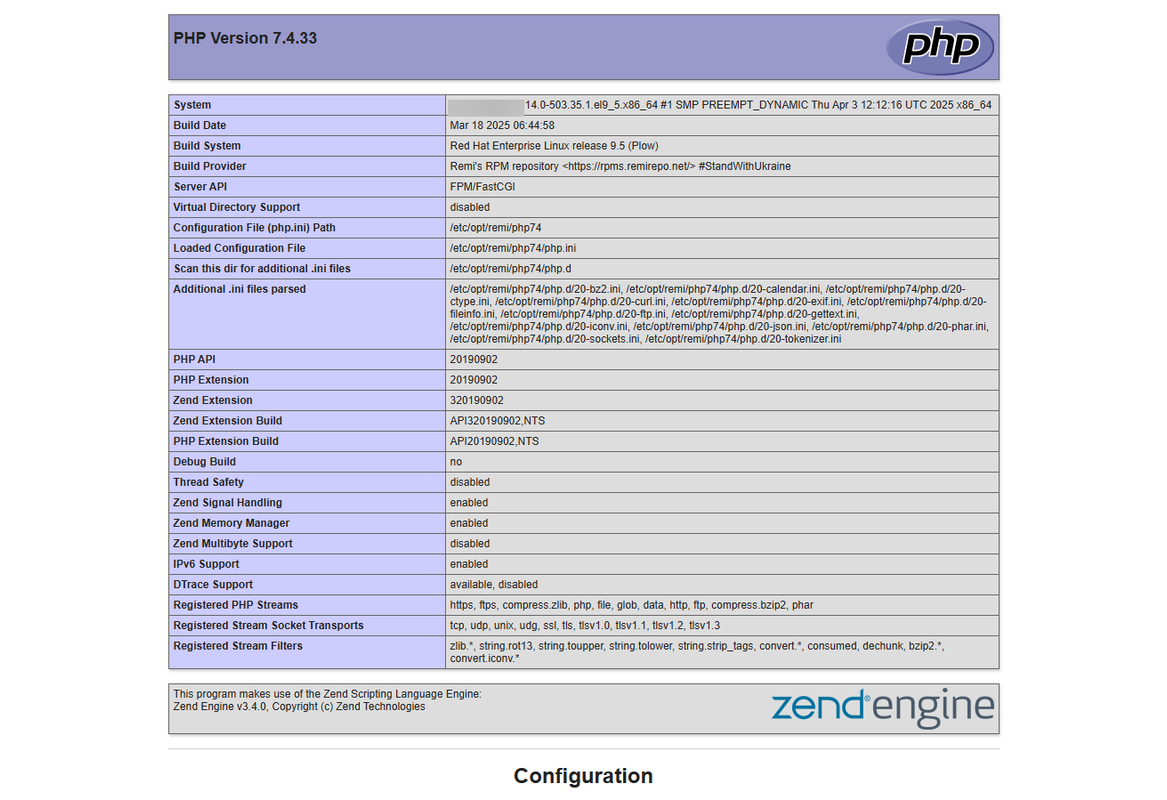 In this article, you have installed PHP 7.4 on Rocky Linux 9 and configured PHP-FPM to serve web applications with a web server. PHP is a modern server-side scripting language used to develop dynamic web applications. You can use PHP 7.4 with specific applications and frameworks like Laravel, Symfony, and WordPress version that require it since it reached its end of life and not safe to run unless required.