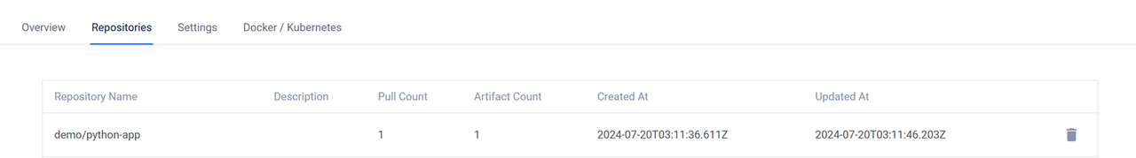 - Access your Vultr Container Registry’s management page, navigate to the Repositories tab, and verify that the new container image repository is available.